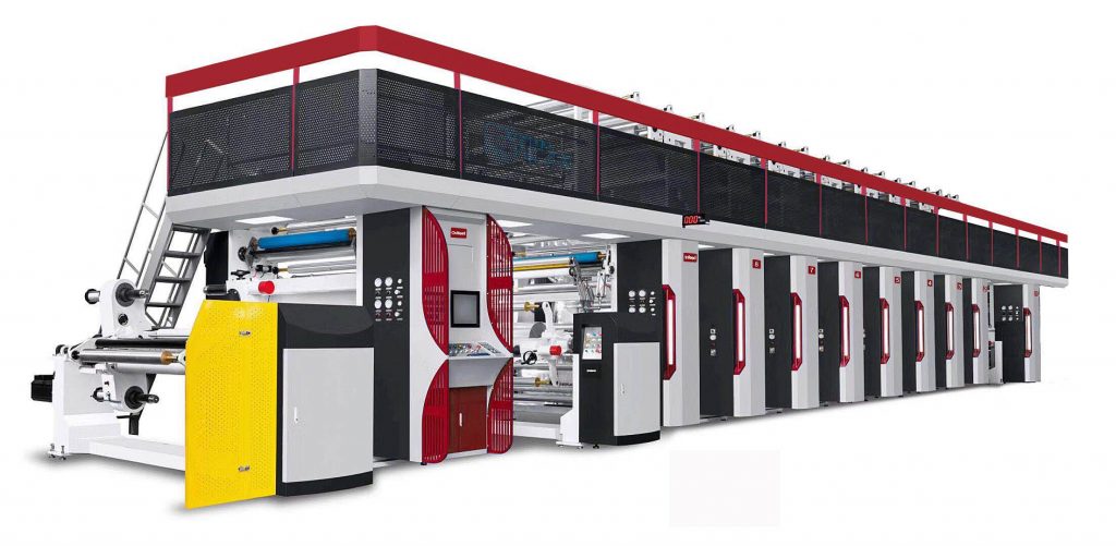 เครื่องพิมพ์รุ่นนี้ใช้มอเตอร์ 7 ตัว พร้อมด้วย PLC ควบคุม Tension (ความตึงของม้วนพลาสติก)ระบบควบคุมมาร์กสีและจอแสดงผลสำหรับตรวจสอบคุณภาพของงานพิมพ์ ระบบอัดบล็อก ใช้ลม วัตถุ ดิบที่สามารถนำมาพิมพ์ได้ ได้แก่ BOPP,PET,PVC,PE,
