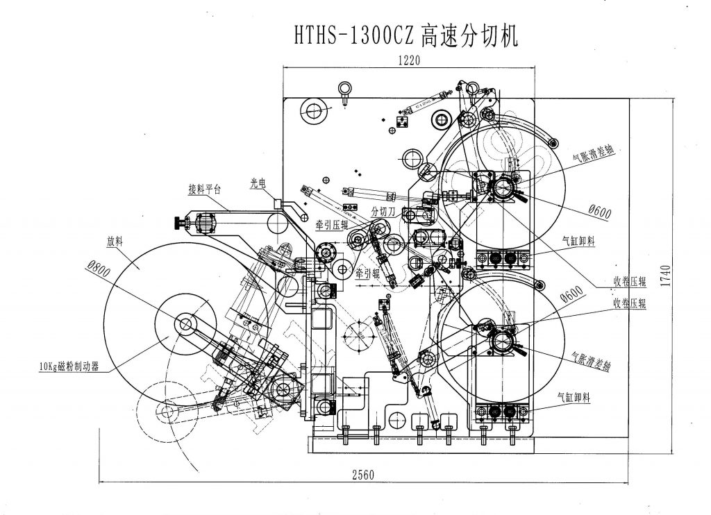 • ใช้เพลาแอร์ชาร์ปในการใส่ม้วน เบรกไฟฟ้าควบคุมด้วย PLC มีโหลดเซลล์เป็นเซนต์เซอร์
